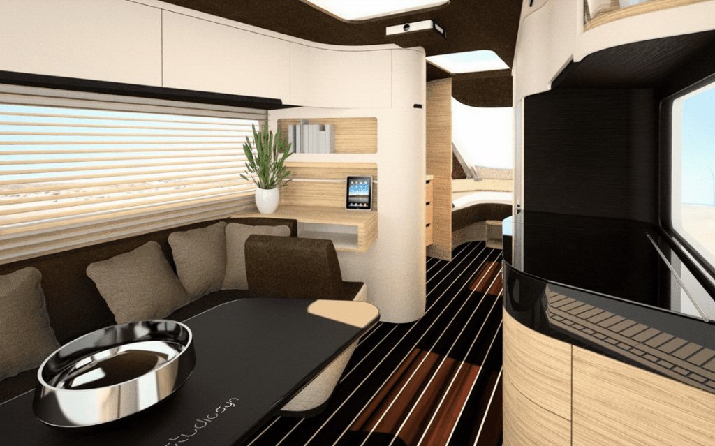 Projektant przyczepy kempingowej firmy Knaus Tabbert, ewidentnie inspirował się projektami luksusowych jachtów. Priorytetem nie był niski budżet, ale przedstawienie koncepcji luksusowej przyczepy kempingowej. W projekcie zastosowano absolutnie niespotykane nigdzie rozwiązania które wyniosły przyczepę dużo dalej od ewentualnej konkurencji. Przykładowo zamiast tradycyjnych zamków w drzwiach zastosowano, system biometryczny - w części „tarasowej” znajdziemy system multimedialny projektor Wideo, tutaj też mamy do dyspozycji chłodziarki do wina. Sterowanie całej przyczepy odbywa się za pomocą smartfona gdzie mamy kontrolę nad wszystkimi funkcjami przyczepy od temperatury po zapas wody czy sterowanie oświetleniem. Nie zapomniano o systemach do ładowania rowerów elektrycznych czy systemie nagłośnienia z najwyższej pułki. Wnętrze i zastosowane materiały nie pozostawiają złudzeń że to nie będzie tani wakacyjny dom na kółkach.