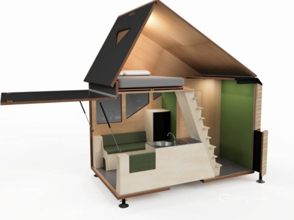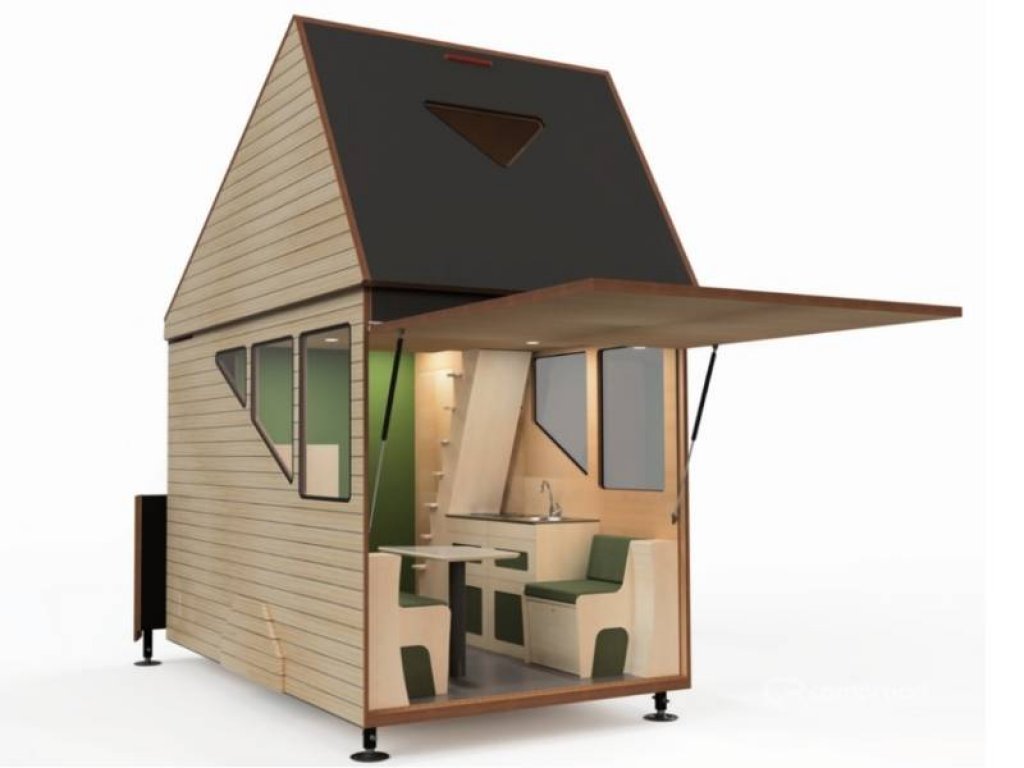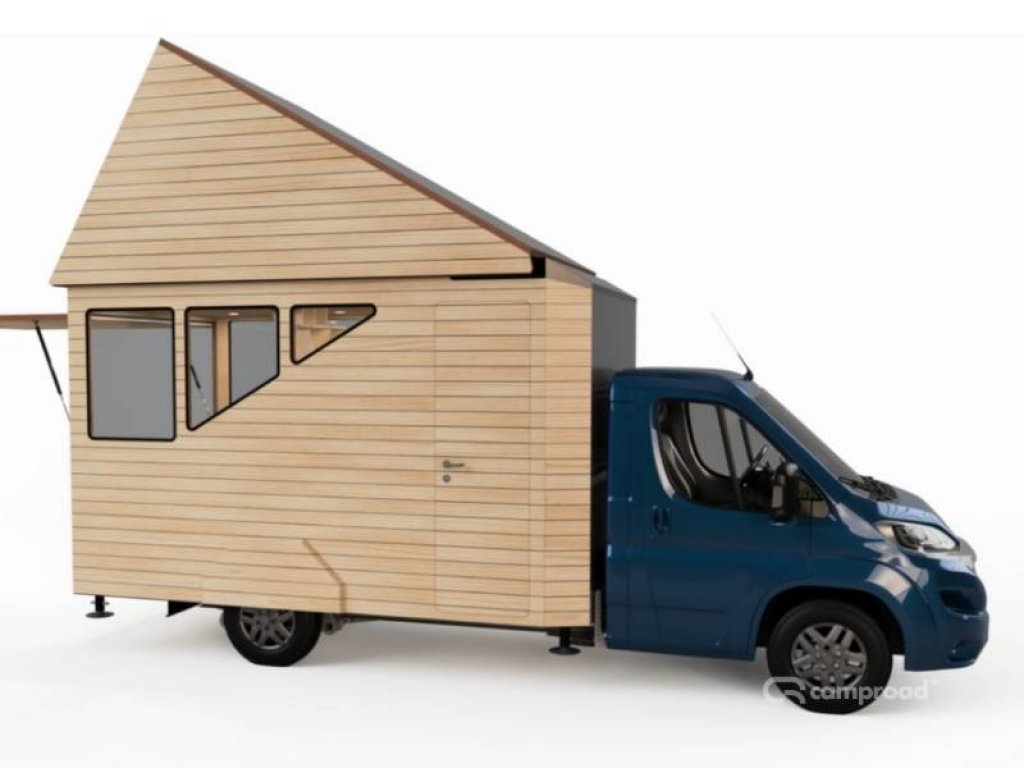 Holenderska firma Haaks stworzyła projekt, który zaciera granicę między kamperem a przyczepą kempingową. Mobilny „dom” z łatwością zsuwa się z podwozia na którym jest zabudowany, osadzając się na hydraulicznych nogach. Podnoszony dach w zabudowie, przekształca go w coś więcej niż przyczepę. Ta konstrukcja staje się piętrowym małym domkiem ze wszystkimi udogodnieniami do wygodnego spędzania wakacji lub nawet dłuższego pobytu.