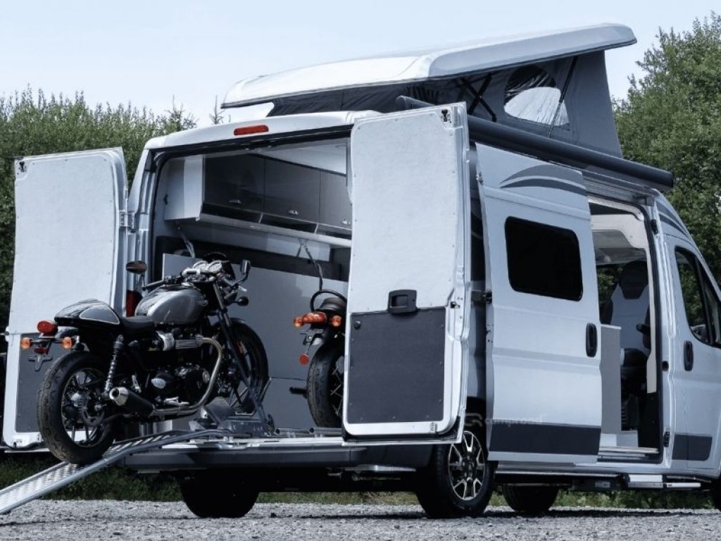 Jumper Bike Solution to średniej wielkości, ale zaskakująco pojemny kamper, który może pomieścić do czterech osób i jest w stanie zabrać na pokład dwa motocyle jednocześnie lub nawet małego quada.