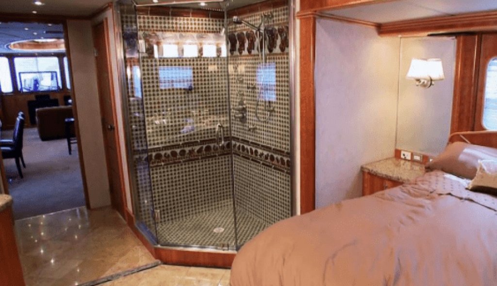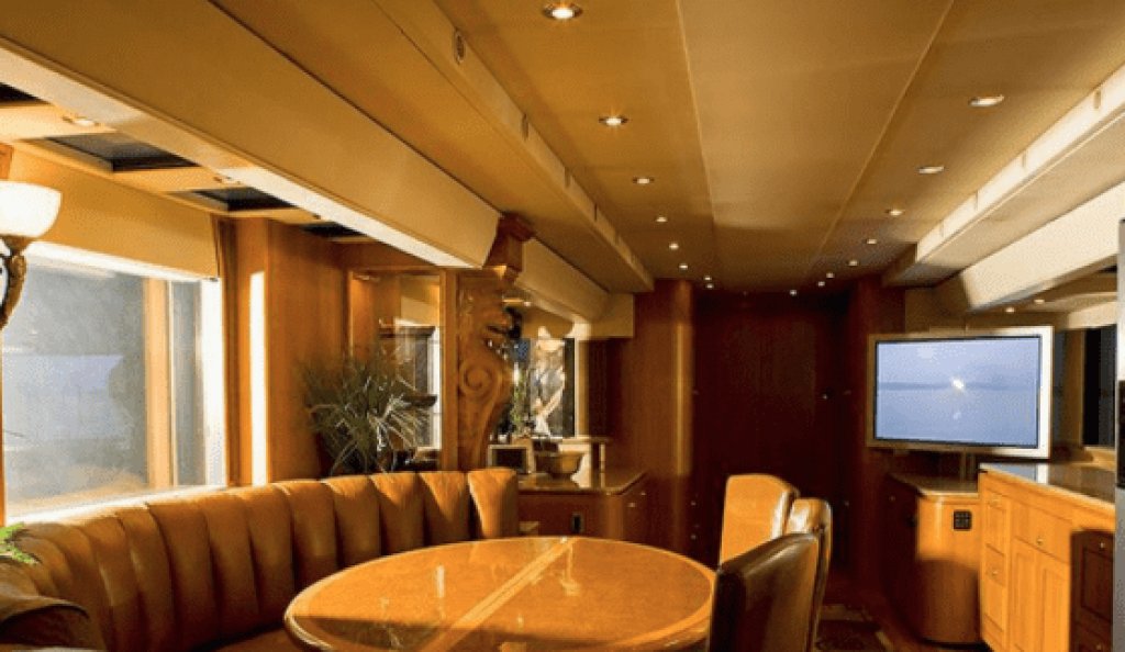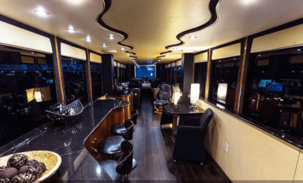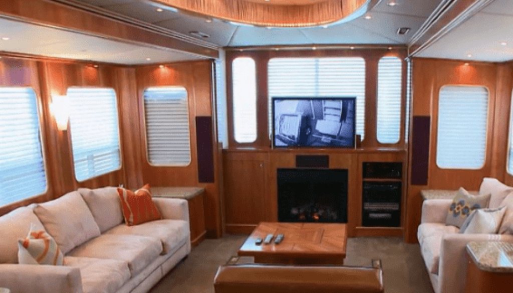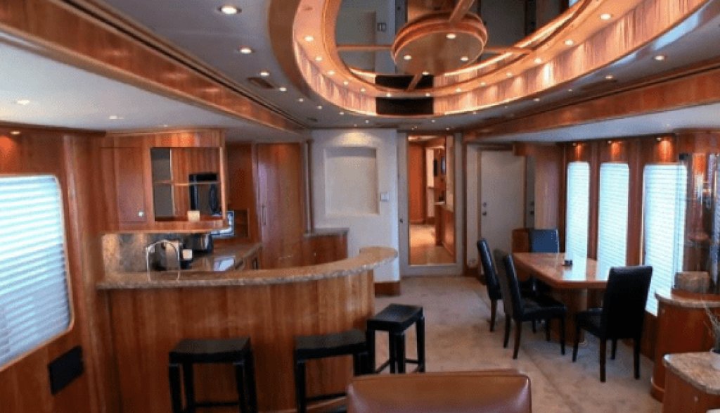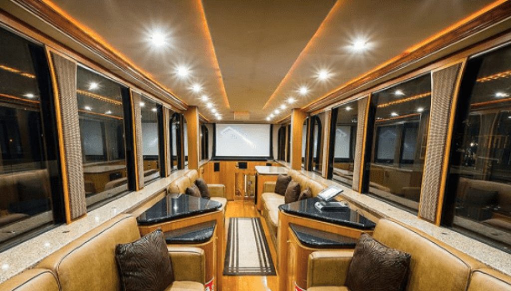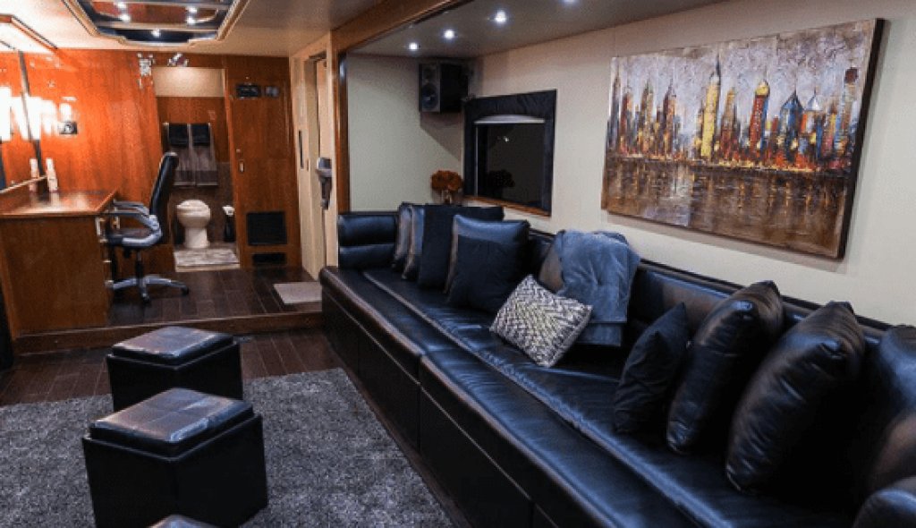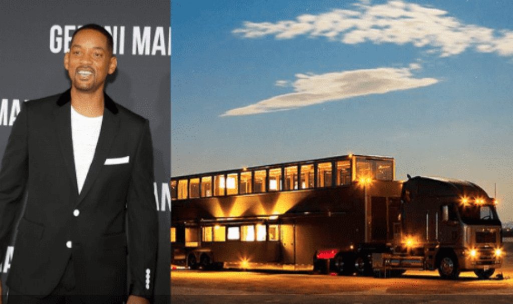 Aktor Will Smith, znany z wielu hitowych produkcji, w swojej przyczepie na kółkach posiada ekran, który liczy sobie… 100 cali! Oprócz tego, znajduje się w nim przestronna garderoba z drzewa wiśniowego. Powierzchnia przyczepy to aż 360m2 – tak wiem mój dom jest 3 razy mninejszy. Ta przyczepa stoi na 22 kołach, wyposażona jest w 14 ekranów telewizyjnych, jest pokryta skórą o wartości 30 000 USD i technologią wartą 100 000–125 000 USD. Sama jest wyceniana na około 2,5 mln $