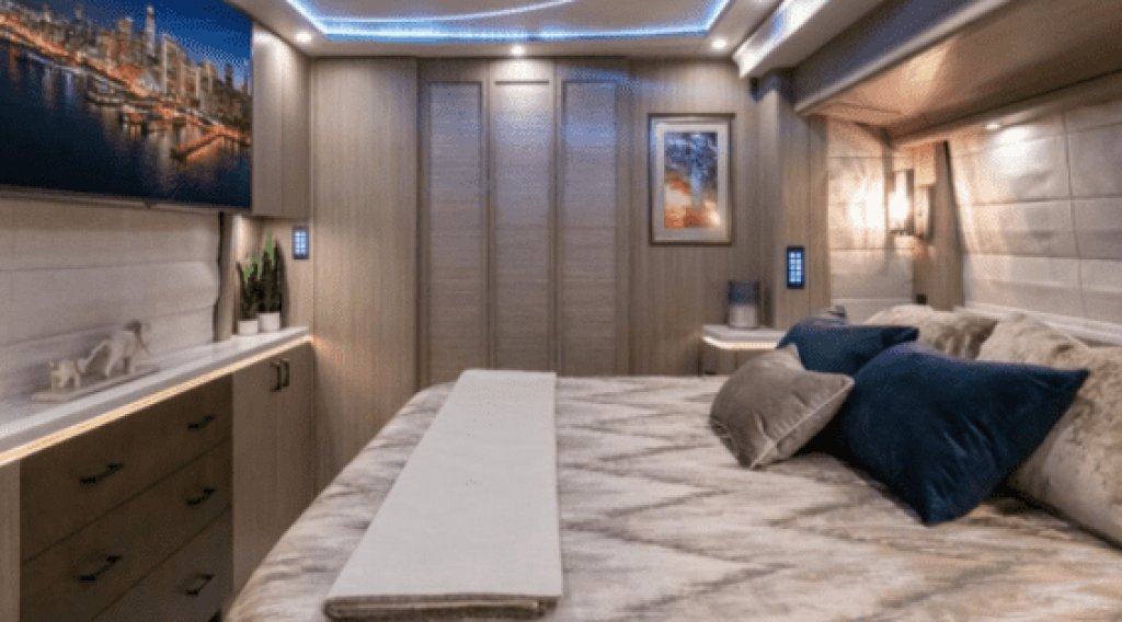 Zagraniczne gwiazdy pokroju Madonny, Rihanny czy rapera Kanye’go Westa postawiły na domki na kółkach o nieco większych gabarytach. Dzisiaj na koncerty jeżdżą luksusowymi… ciężarówkami, które zostały przerobione na spersonalizowane kampery. Wchodząc do środka, bylibyście pewni, że właśnie otworzyliście drzwi do bogato wyposażonego hotelowego apartamentu.
