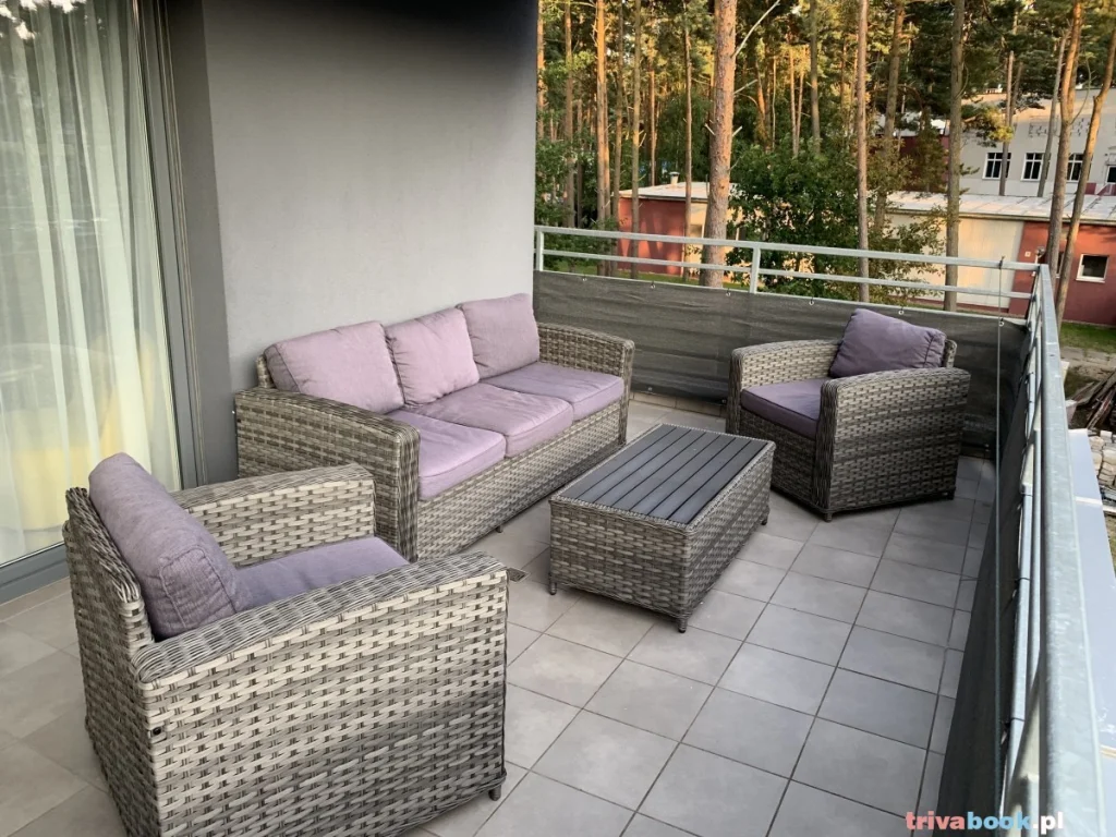 Apartament jest typem Studio do dyspozycji naszych Gości są: salon z kuchnią w pełni wyposażona, łazienką z prysznicem i pralką, sypialnią, mnóstwo zabawek dla młodszych Gości do zabawy na plaży jak i w Apartamencie, miejsce postojowe w cenie, usytuowany na drugim pietrze (budynek z windą) dla nielubiących plażowego zgiełku duży słoneczny taras w pełni umeblowany o powierzchni 16 m2.